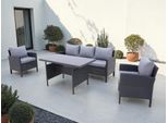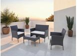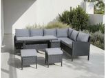 Hergestellt aus robustem Stahl und pflegeleichtem Polyrattan, bietet das Lounge-Set sowohl Stabilität als auch Langlebigkeit. Die pulverbeschichteten Oberflächen sorgen dafür, dass das Möbelset auch im Freien den Elementen trotzt.